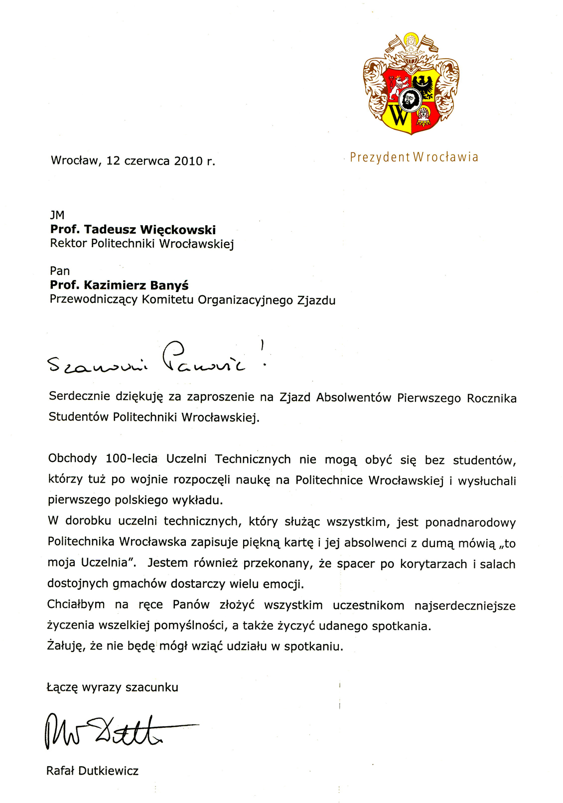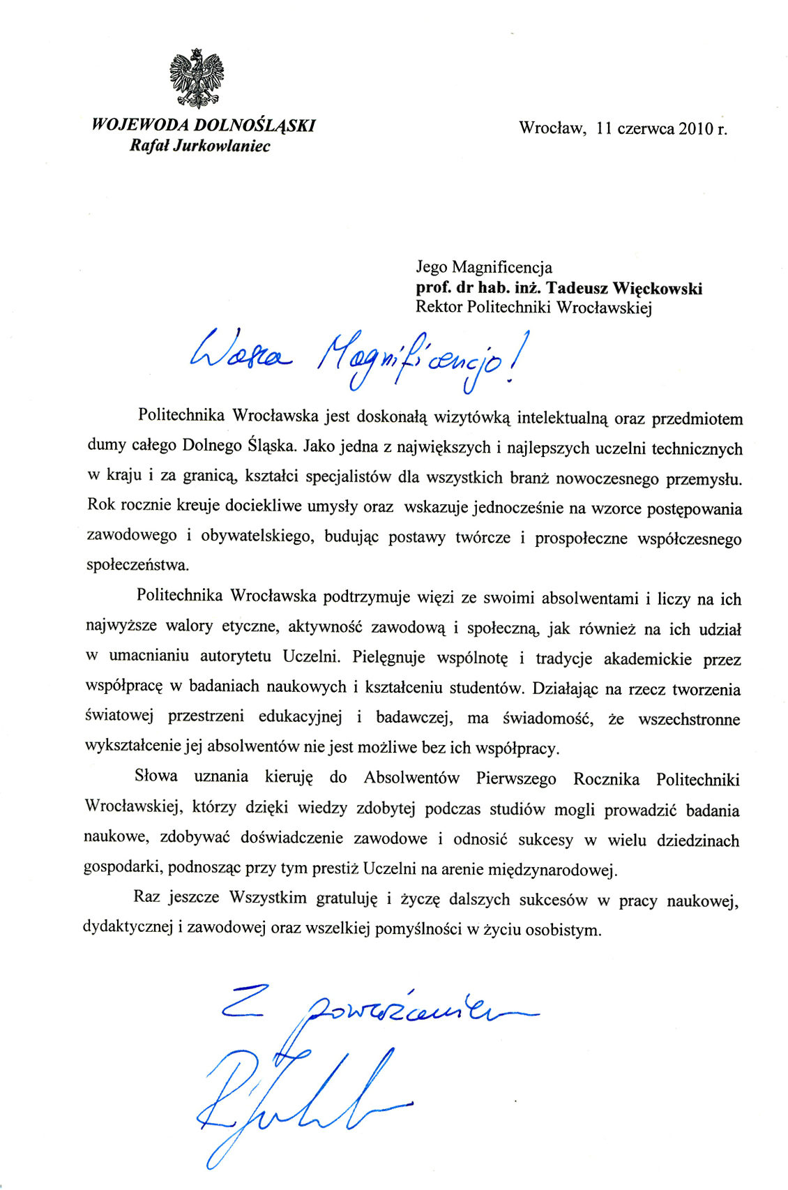 Patronat nad Zjazdem objął JM Rektor Politechniki Wrocławskiej, profesor Tadeusz