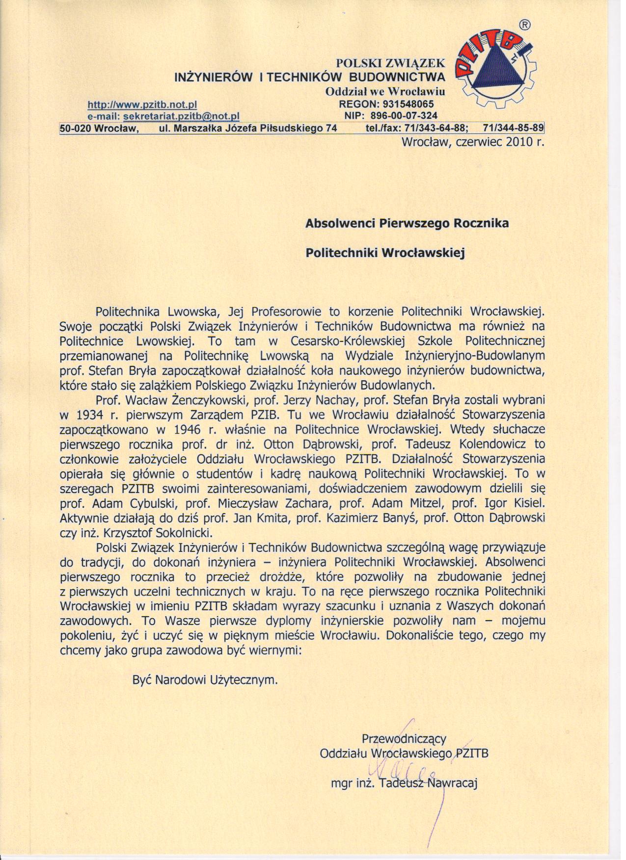 otwarcia Polskiej Politechniki Wrocławskiej. W Zjeździe wzięli udział Pierwsi