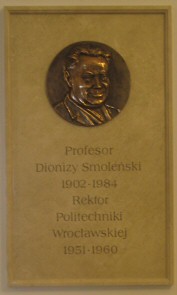 Z inicjatywy Stowarzyszenia Absolwentów Politechniki Wrocławskiej, Senat Politechniki Wrocławskiej, zgodnie z uchwałami nr 311/24/2002-2005 i 312/24/2002-2005, z dnia 21.10.2004 r., postanowił uhonorować osobę prof. Dionizego Smoleńskiego, pierwszego rektora naszej, samodzielnej już, uczelni tablicą pamiątkową z płaskorzeźbą, która jest wmurowana w holu gmachu Głównego oraz cokołem z popiersiem JM Rektora.