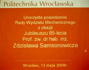 W dniu 13 maja 2008 roku z okazji Międzynarodowej Konferencji Naukowej na temat Zapewnienie jakości w Odlewnictwie 2008. w auli Politechniki Wrocławskiej zostało zorganizowane Uroczyste Posiedzenie Rady Wydziału Mechanicznego z okazji Jubileuszu 85-lecia pracownika tego wydziału prof. zw. dr hab. inż. Zdzisława Samsonowicza.