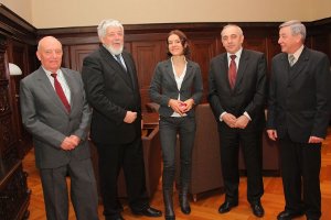 Członkowie Kolegium Rektorów Uczelni Wrocławia i Opola: W pierwszym rzędzie od prawej: prof. dr hab. inż. Tadeusz Więckowski (Politechnika Wrocławska), prof. dr hab. Marek Bojarski (Uniwersytet Wrocławski), Ks. prof. dr hab. Waldemar Irek (Papieski Wydział Teologiczny), gen. bryg. Kazimierz Jaklewicz (Wyższa Szkoła Oficerska Wojsk Lądowych). W drugim rzędzie od prawej: prof. dr hab. Ryszard Andrzejak (Akademia Medyczna), prof. Jacek Szewczyk (Akademia Sztuk Pięknych), prof. dr hab. Krystian Kiełb (Akademia Muzyczna). W trzecim rzędzie od prawej: prof. dr hab. Bogusław Fiedor (Uniwersytet Ekonomiczny), prof. dr hab. inż. Krystyna Czaja (Uniwersytet Opolski), prof. dr hab. Roman Kołacz (Uniwersytet Przyrodniczy), prof. dr hab. Juliusz Migasiewicz (Akademia Wychowania Fizycznego), prof. dr hab. Eugeniusz Józefowski (Państwowa Wyższa Szkoła Zawodowa w Głogowie).